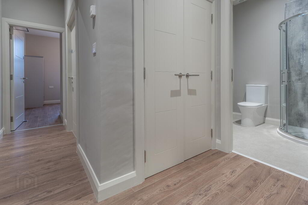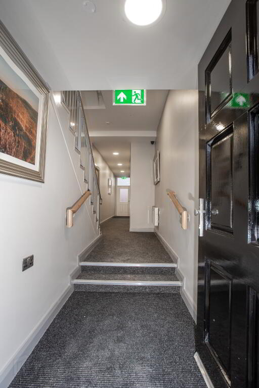 Internally this new build property has been completed to an exceptionally high standard. The modern hall area is set off by the large, chamfered skirting and architrave which frame the stylish fire doors with chrome ironmongery. This leads to the impressive communal stair case which is CCTV protected for the security of the residents.