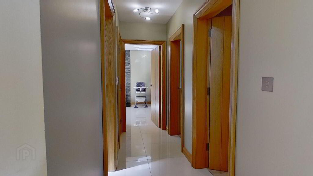 Internally this recently constructed property has been completed to an exceptionally high standard. The modern hall area is set off by the large, chamfered skirting and architrave which frame the stylish oak doors with chrome ironmongery.